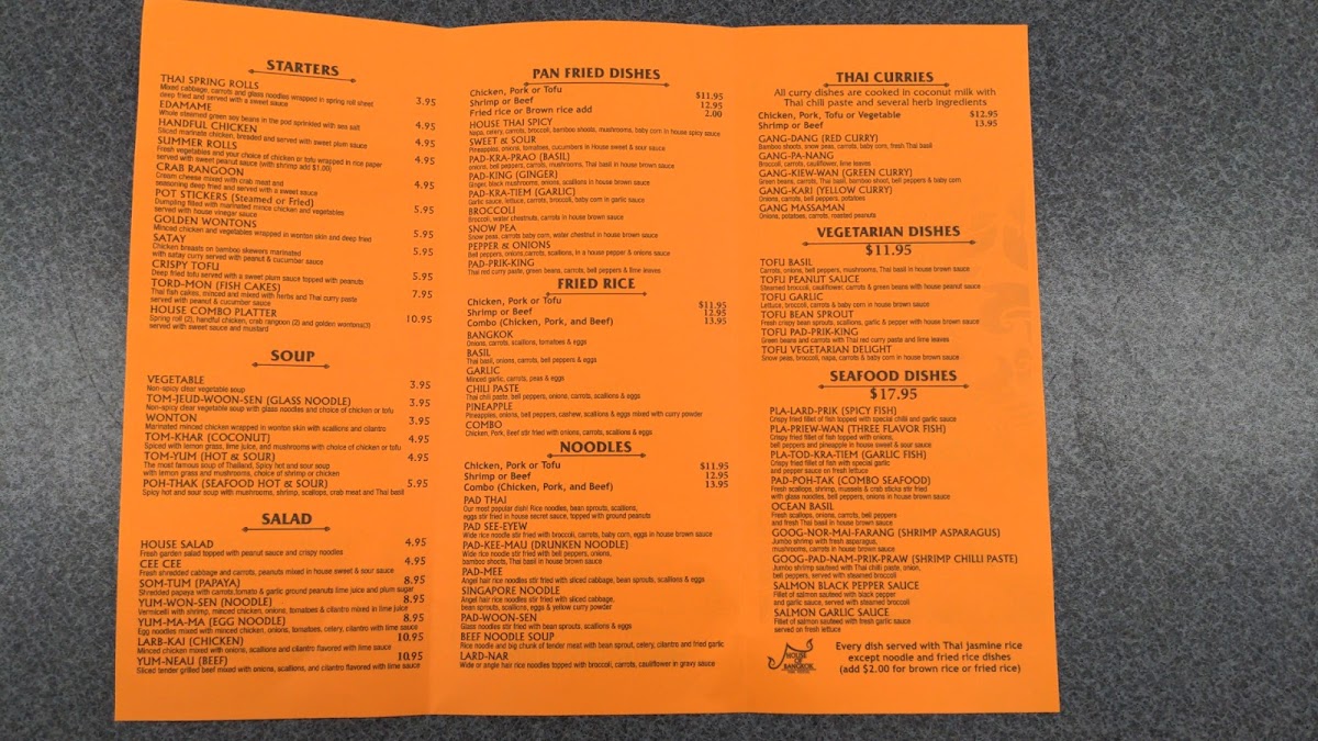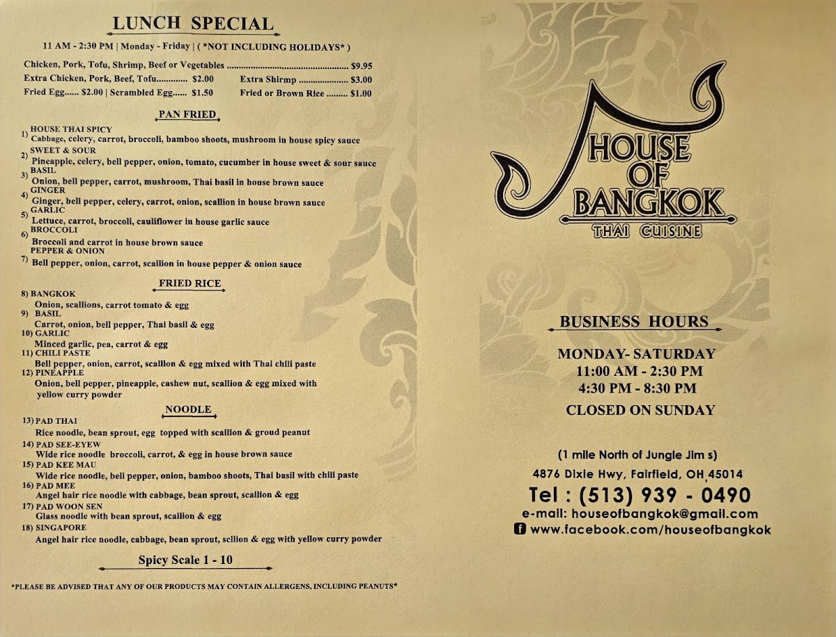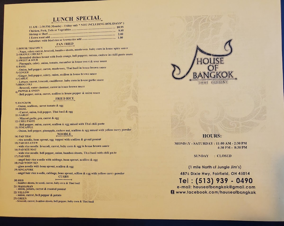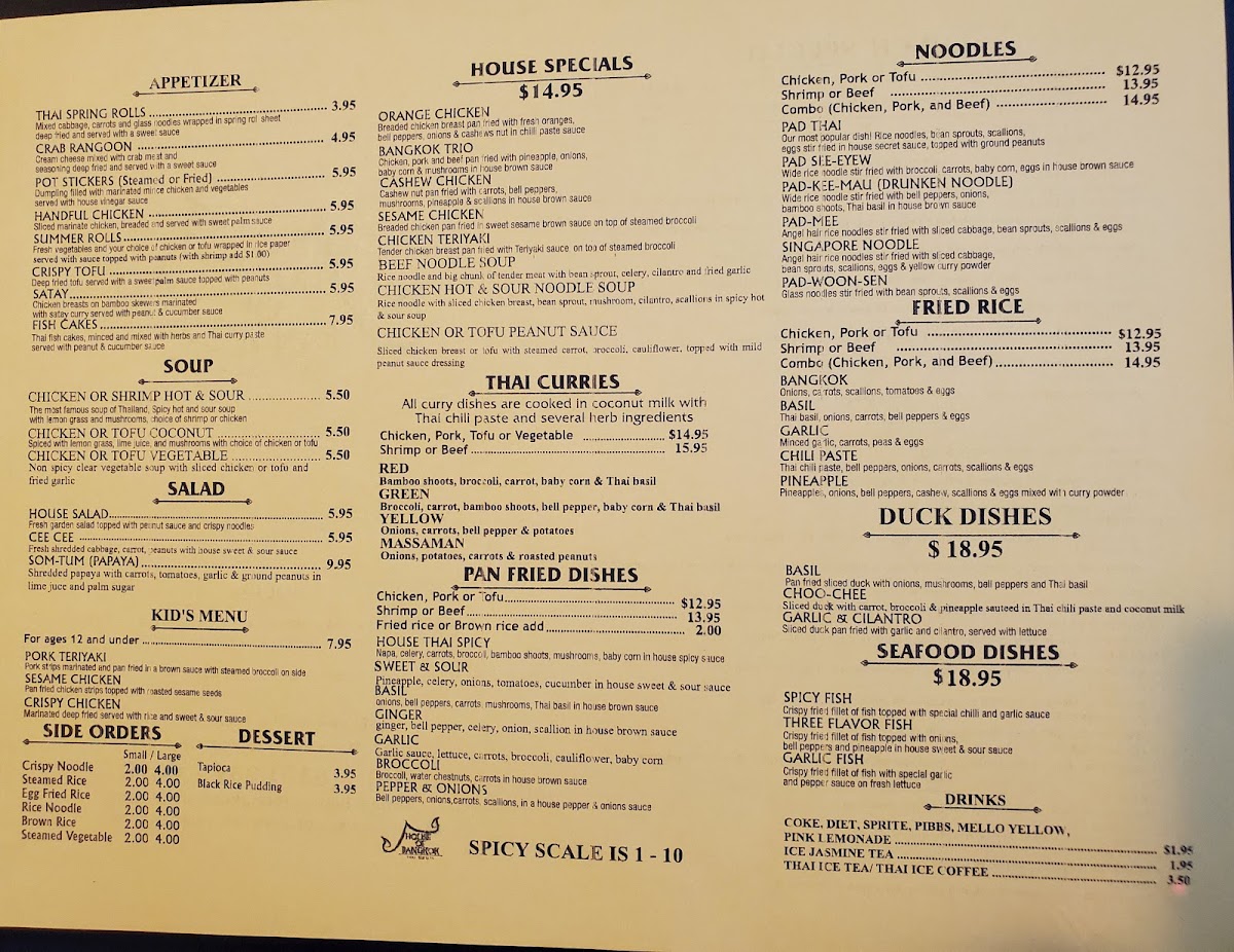 House of Bangkok Thai Cuisine Menu